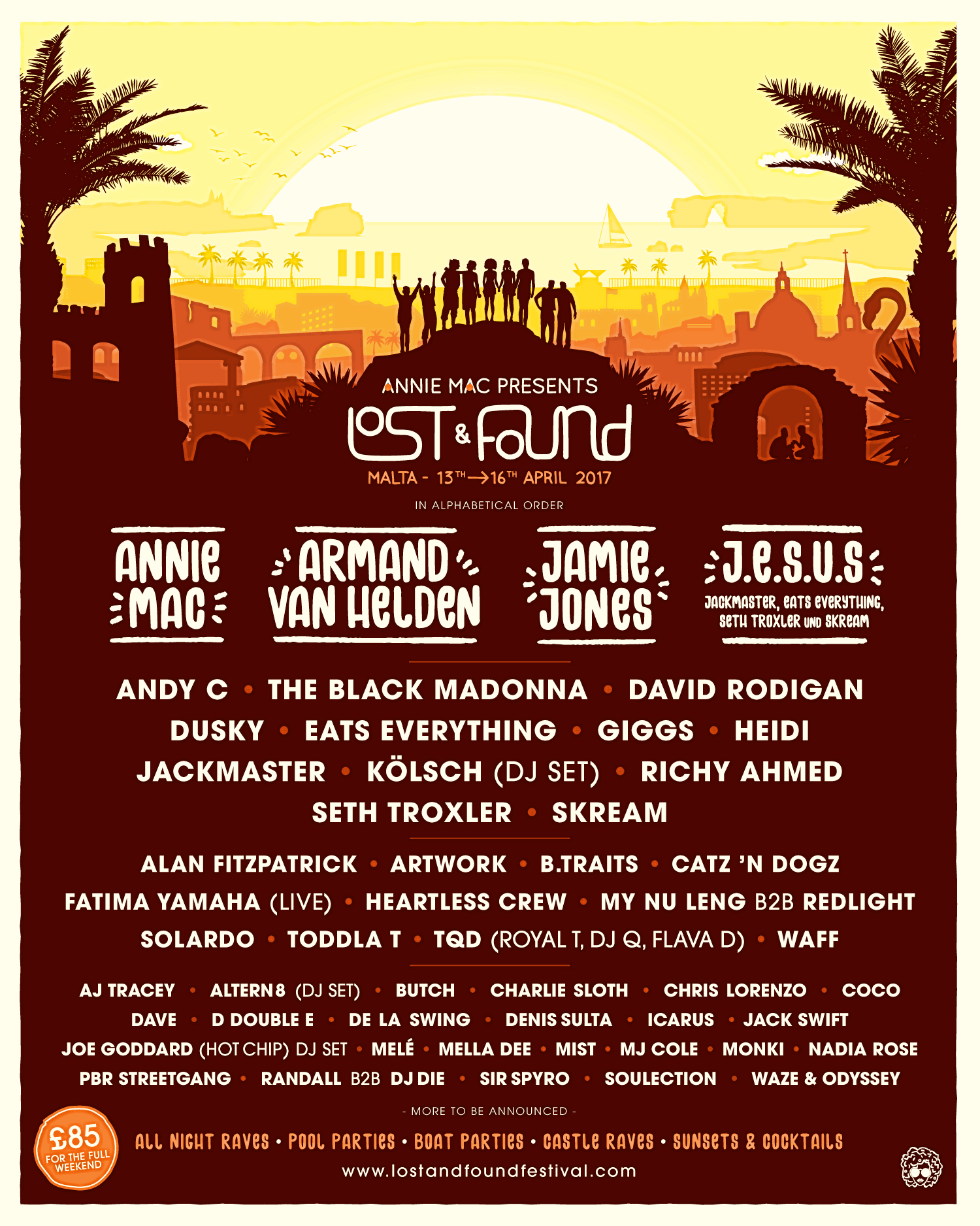 Lost & Found Festival – Set to return to the stunning Mediterranean island of Malta next 13th – 16th April, Annie Mac Presents Lost & Found Festival has revealed a huge array of names for its third edition. Offering 4 days and 4 nights of unique parties held across pools, boats, clubs and castles, the award-winning festival will welcome an eclectic mix of AMP’s close friends and family plus a slew of exciting breakthrough artists for its latest celebration.