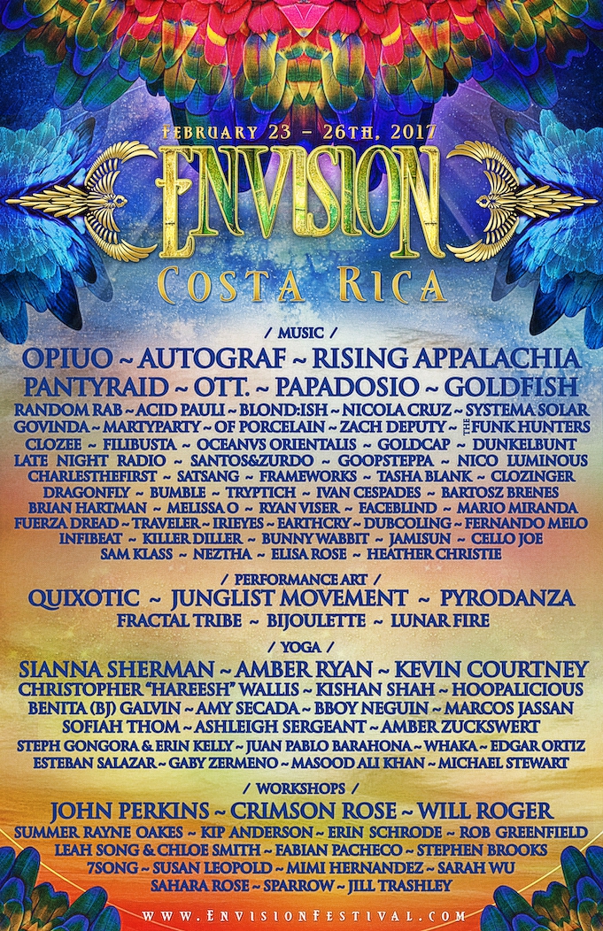 Envision Festival 2017 – Envision Festival, the regenerative festival dedicated to awakening human potential and our fundamental connection with nature, reveals the second phase lineup for its seventh annual gathering, taking place February 23rd-26th 2017 in the beautiful Uvita, Costa Rica. Joining Envision’s inspiring first lineup is South Africa’s world-famous electronic duo Goldfish, space rock performer Papadosio, the deeply rhythmic Ecuadorian DJ Nicola Cruz, and the incredibly immersing Govinda.