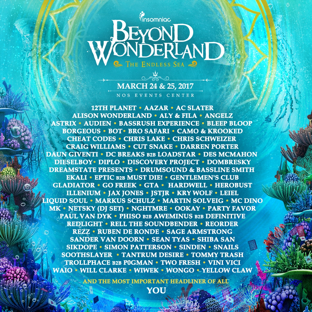 Beyond Wonderland 2017 Lineup – Insomniac has unveiled the exceptional lineup of artists set to perform at the reimagined Beyond Wonderland 2017. The two-day celebration will transport Headliners into a brand new, fantastical dimension of Beyond Wonderland, the Endless Sea.