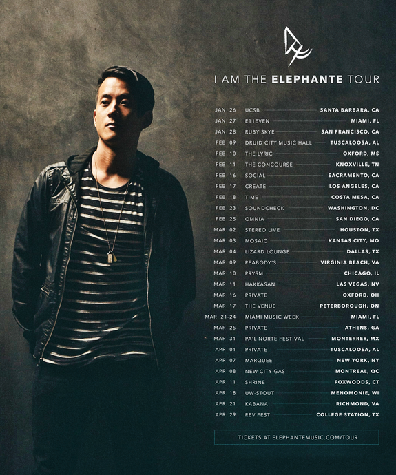 Elephante has confirmed that after transitioning into 2017 with his debut I Am The Elephante EP, his remix package and more recent release of The Zoo Vol. 3, we can expect the artist to be performing across a wide variety of venues across North America. With everything said and done, it’s no doubt that Elephante is continuously rising.