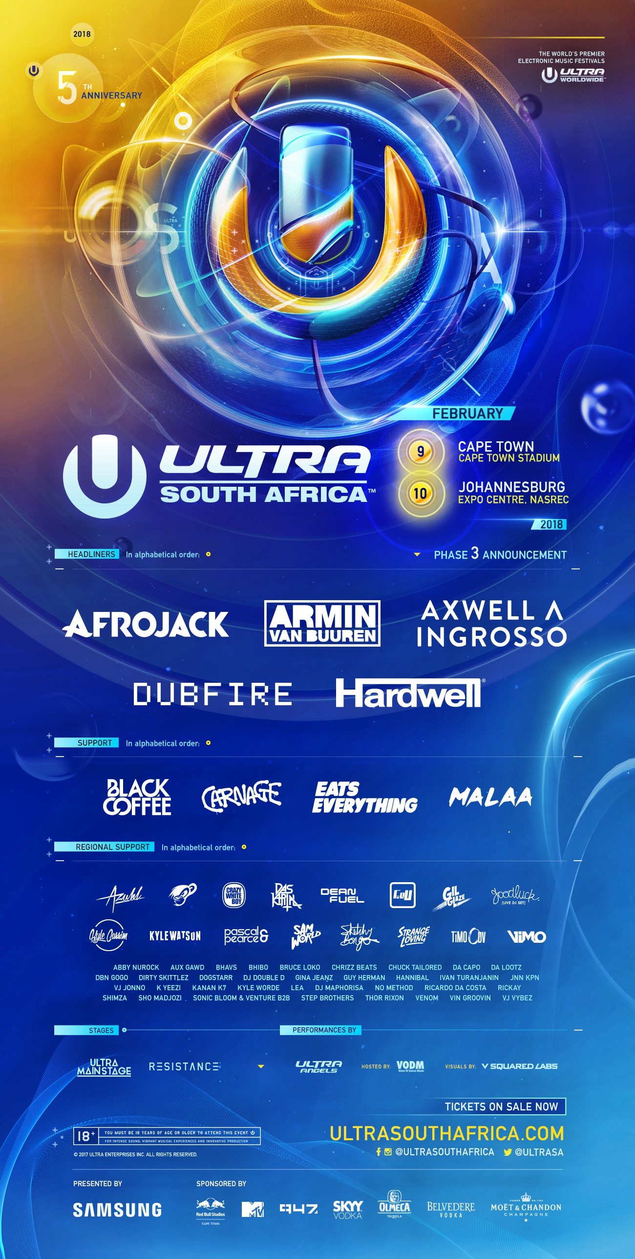 Ultra South Africa 2018 Lineup – As Ultra South Africa 2018 draws nearer, the festival’s lineup continues to grow even more impressive. Calling on a diverse selection of star-studded international talent and home grown heroes, next year’s fifth anniversary is set to be their biggest to date.